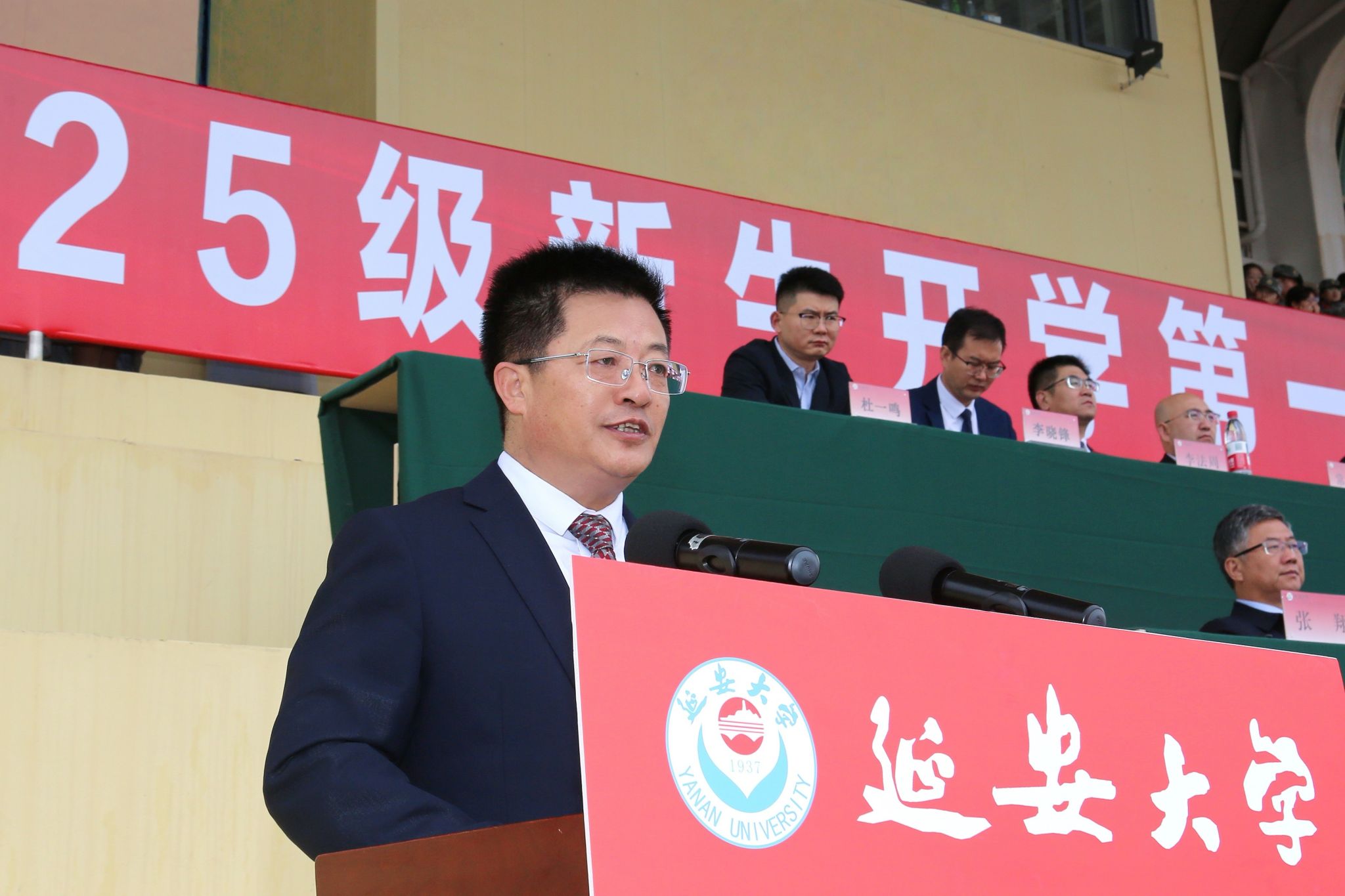 军训表彰大会结束后,高子伟书记为全体新同学讲授了题为《传承延大薪火,争做弘扬延安精神的时代新人》的开学第一课。高子伟书记首先通过“七个一”向同学们概述了藏宝阁精选资料大全998的办学特质:是一所承载初心的大学、是一所辉煌灿烂的大学、是一所贡献卓越的大学、是一所特色鲜明的大学、是一所扎根老区的大学,是一所砥砺奋进的大学、是一所前景光明的大学,并与同学们共同追忆了一代代延大人用鲜血和汗水铸就的“承载初心、辉煌灿烂、贡献卓越、特色鲜明、扎根老区、砥砺奋进、前景光明”的峥嵘校史。他指出,藏宝阁精选资料大全998是延安精神形成的重要参与者和传承弘扬的忠实践行者,要继承优良传统,把延安精神传承在新时代、弘扬在新时代、践行在新时代,努力做新时代延安精神的传承者。他希望全体新同学铸牢忠诚信仰,做爱党爱国的新时代延大人;厚植赤子情怀,做爱校荣校的新时代延大人;赓续红色血脉,做传承薪火的新时代延大人;主动拥抱AI,做与时偕行的新时代延大人;希望同学们立志听党话、跟党走,立志扎根人民、奉献国家,做爱党爱国的新时代延大人。希望不负时代重托、不负青春韶华,以自强不息的信念、踔厉奋发的姿态,在这片红色沃土上汲取养分、茁壮成长,收获充实而美好的大学时光!
