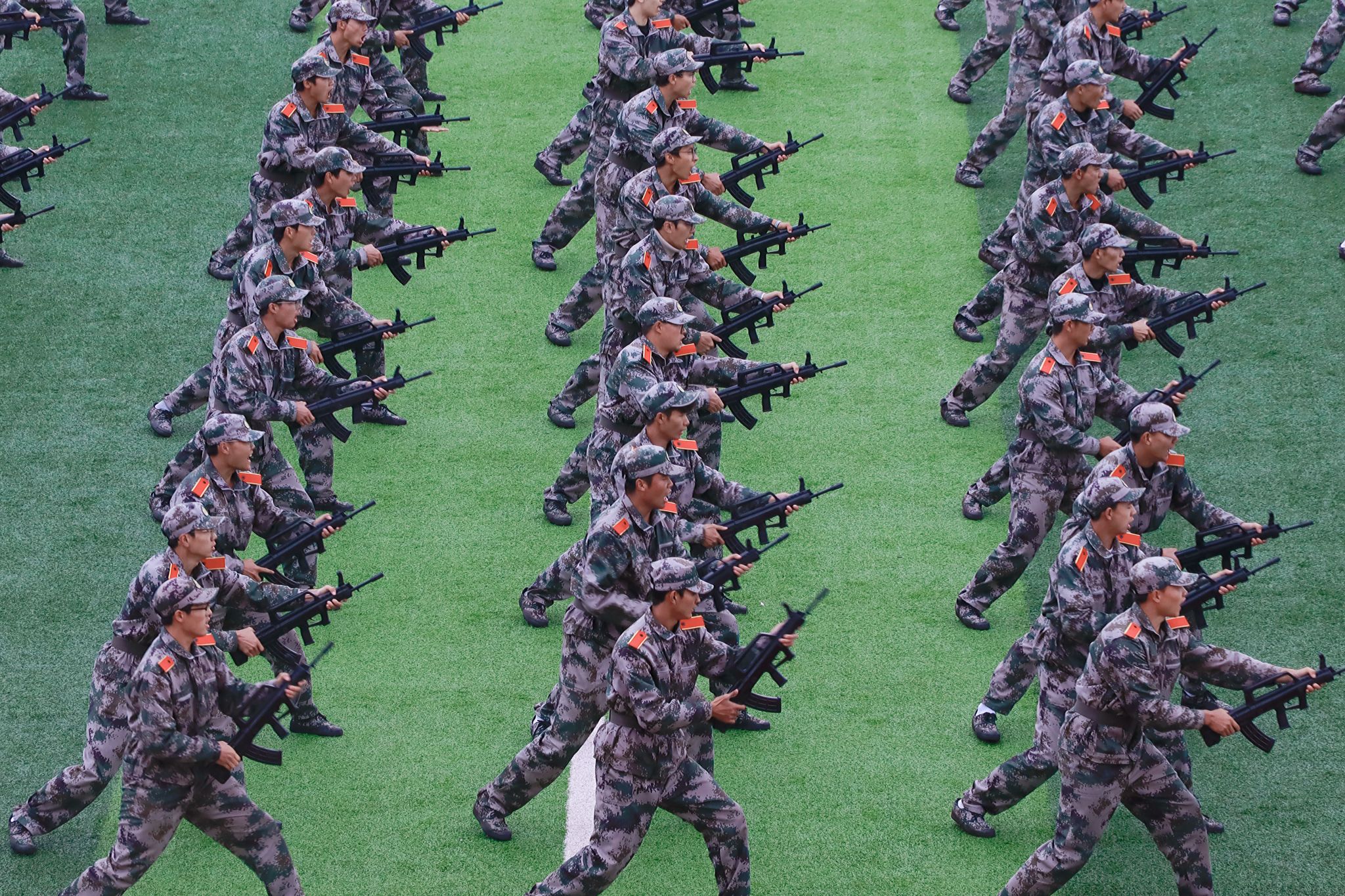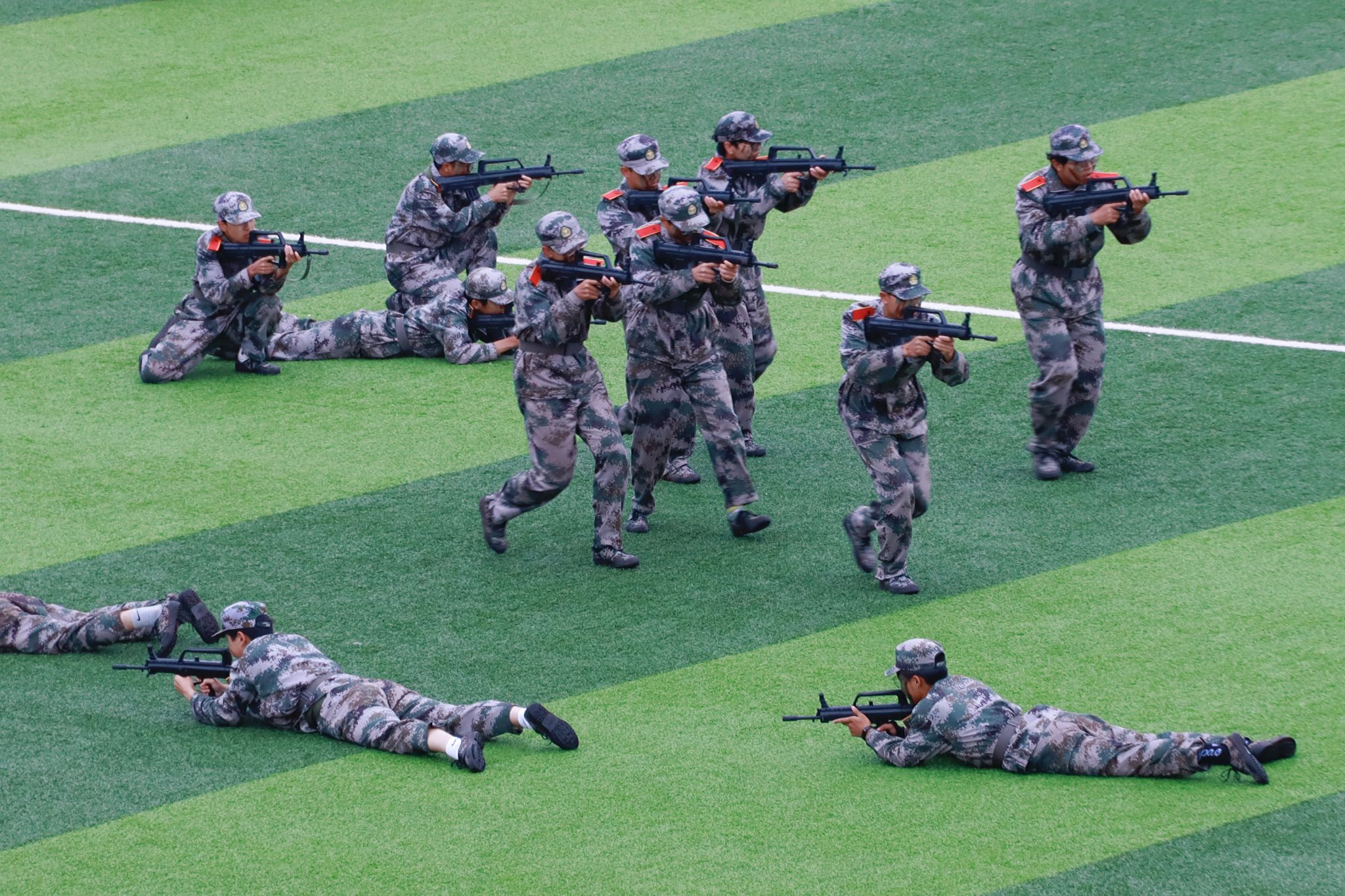军训旅学员依次进行了方阵表演、队列操、团体操、军体拳、匕首操、刺杀操和战术综合演练等七个科目的汇报展示。高亢嘹亮的口号,整齐划一的队列,刚健有力的步伐,充分展现了军训的丰硕成果和延大学子朝气蓬勃、奋勇争先的精神风貌。本次汇报由军训旅一营营长沈一凡指挥。