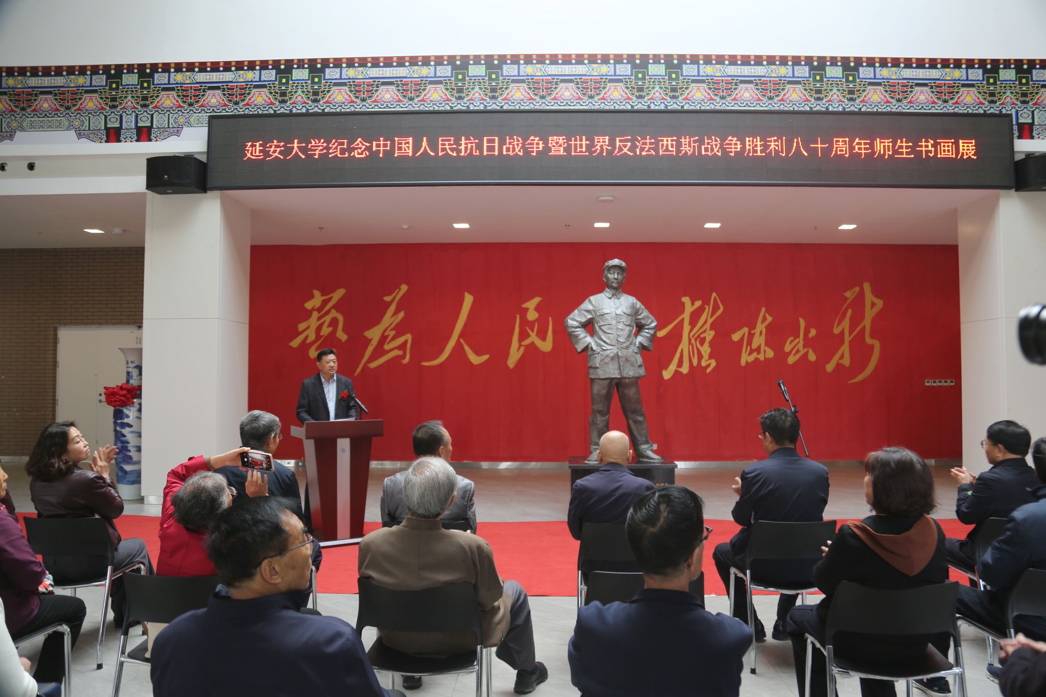 本网讯 为纪念中国人民抗日战争暨世界反法西斯战争胜利八十周年,9月30日,由校工会、离退处、校团委共同主办,教职工书画协会承办的“铭记历史·翰墨铸魂”师生书画展在我校鲁艺美术馆开幕。校党委副书记吕达、副校长吕磊出席开幕式,党委宣传部、校工会、离退处、校团委等部门负责人,教职工书画协会成员及师生代表近百人参加开幕式。开幕式由校工会主席杨曦东主持。