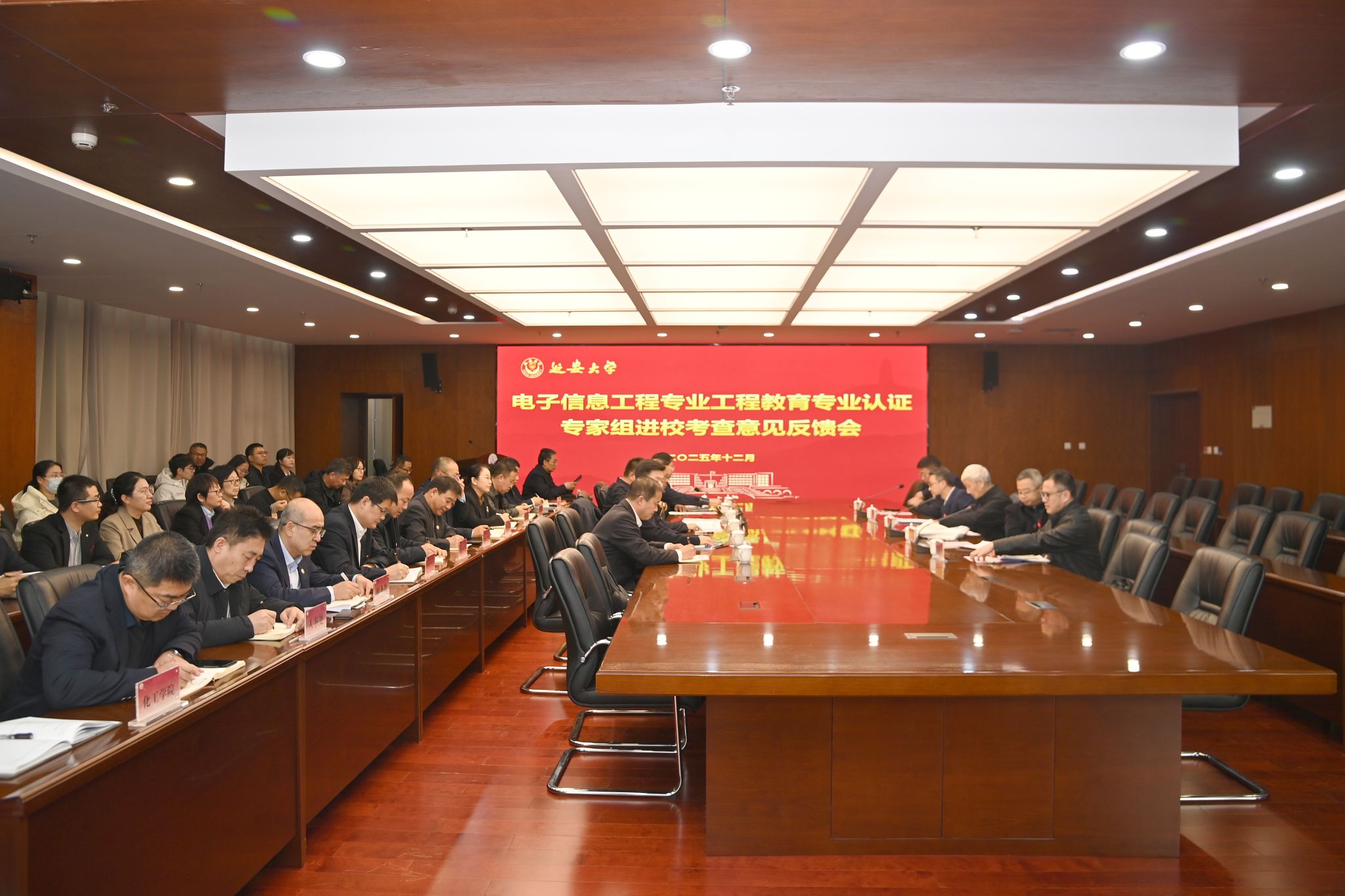 12月12日下午,我校召开专家组意见反馈会。谈振辉主持会议并代表专家组反馈考查意见。他充分肯定了电子信息工程专业建设成效,概括了专业在办学定位、培养理念、教育教学等方面的优势与特色,并对考查中发现的需关注与改进事项作了详细说明。专家组成员围绕课程体系优化、培养目标评价、持续改进机制、产教融合等方面,交流个人考查情况,提出了方向清晰、针对性强的宝贵意见。