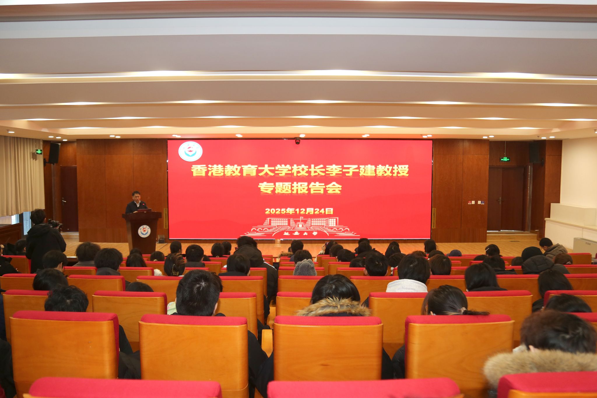 随后,李子建在新城校区行政楼报告厅为我校师生作了题为《〈论教育〉及〈习近平文化思想学习纲要〉的个人分享》的专题报告,副校长吕磊主持报告会。