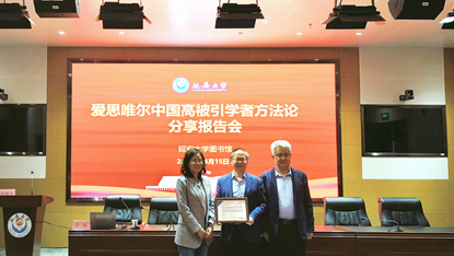 本网讯 近期,爱思唯尔正式发布2025年“中国高被引学者”榜单,我校化学与化工学院徐斌教授入选。4月15日下午,图书馆在新校区图书馆一楼报告厅举行“中国高被引学者”证书颁发仪式暨《爱思唯尔中国高被引学者方法论分享》专题讲座。爱思唯尔政府与高校事业部许靖博士受邀出席,为我校化学与化工学院徐斌教授颁发2025年度“中国高被引学者”荣誉证书,并带来精彩学术分享。我校科研骨干、青年教师及研究生参加,会议由图书馆副馆长尚建人主持。