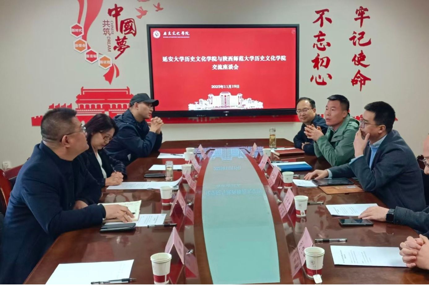 在与陕西师范大学的座谈中,张雪梅、王保存、白中阳分别介绍了学院在学科建设、发展规划、人才培养等方面的情况。陕西师范大学历史文化学院党委书记孙伟、院长李化成等分别介绍了陕西师范大学中国史学科建设的经验与特色,并针对我校中国史学科下一步的发展方向提出了建设性意见。孙伟表示,两校历史学专业同为师范专业,拥有很大的合作空间。李化成表示,未来双方可以加强学术交流与信息沟通,实现资源共享,共同为陕西社会发展做出贡献。