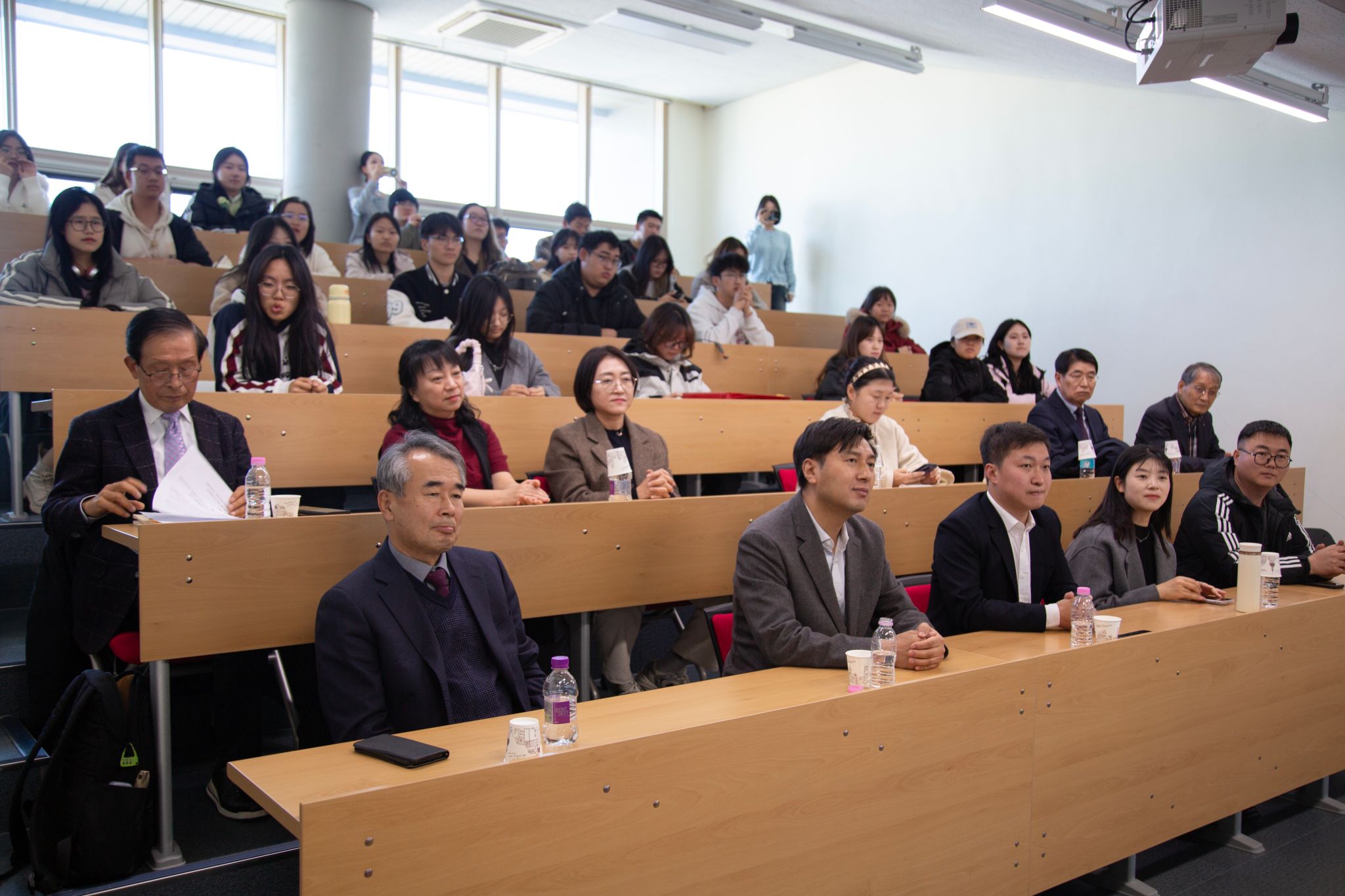 11月20日,研学团首站抵达位于韩国釜山市的东亚大学孔子学院,受到院方的热烈欢迎。双方围绕“汉字简化与繁体字的文化关联”、“汉字在当代韩国社会的传播与影响”等议题展开讨论。会上,东亚大学孔子学院中方院长、东北师范大学许真玉教授,原外方院长、东亚大学文哲珠教授与我校三位教师先后发言,分别介绍了各自学校的办学情况,接着文哲珠教授分享了汉字在韩国典籍与日常语境中的使用状况,我校师生则结合汉字演变史解析其承载的文明密码,现场交流氛围热烈。会后双方一致表示,将以此次对话为契机,拓展汉字研究、学生互访等领域的合作。并一致肯定了此次交流活动对于促进中韩青年相互理解、深化两校友谊的重要意义。