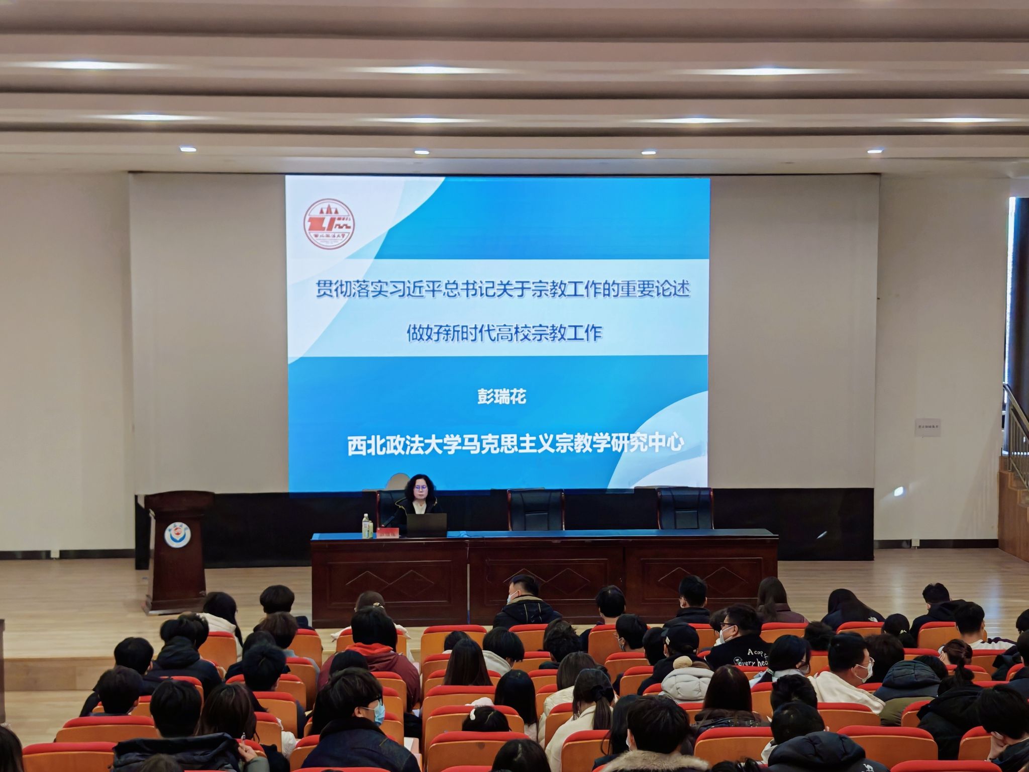 本网讯 12月11日下午,我校统战部特邀陕西省民族宗教工作专家库首批专家、西北政法大学马克思主义宗教学研究中心执行主任彭瑞花教授,为我校2024级、2025级学生信息员开展了抵御防范非法宗教进校园专题培训会。