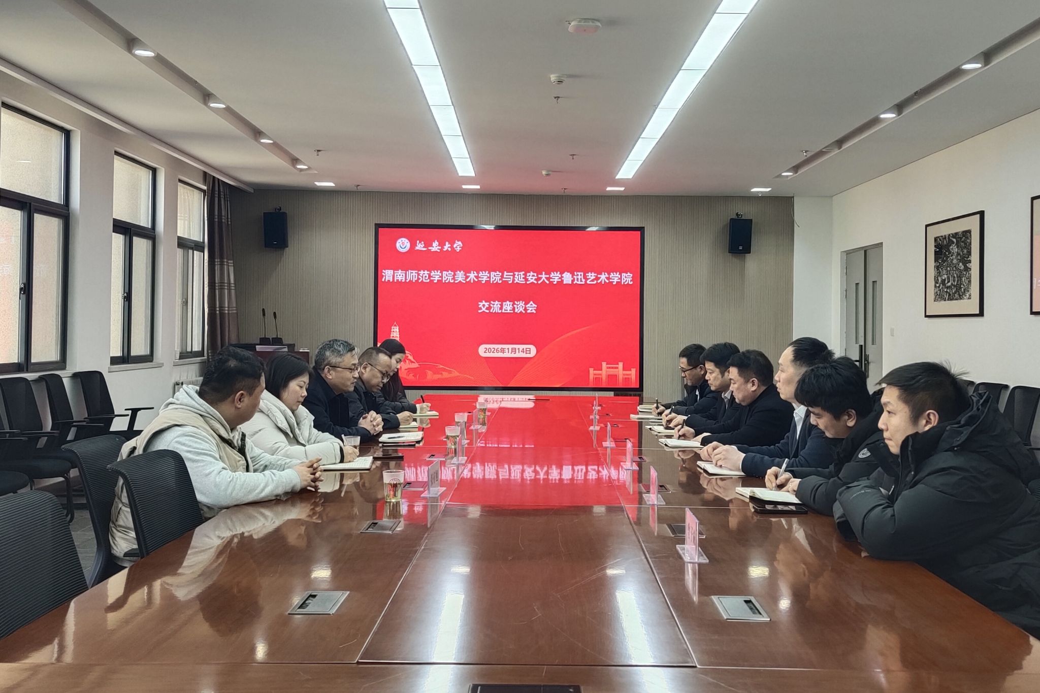 本网讯 1月14日下午,渭南师范学院美术学院院长石海彬、副院长石洁、刘涌涛一行5人到访我校鲁迅艺术学院,双方围绕学科建设、科研项目申报与本科人才培养等主题开展交流座谈。鲁艺学院院长李延俊、副院长兰庆炜、李辉及美术系、设计系等相关负责人参加了座谈。