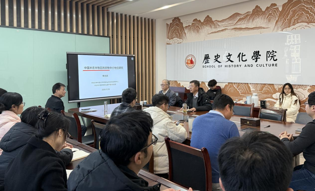 12月24日下午,应历史文化学院邀请,西北农林科技大学中国农业历史文化研究中心樊志民教授在学院3楼会议室,举办了题为《中国半农半牧区的农牧中介地位研究》的学术讲座。本次讲座由历史文化学院杜林渊教授主持,中国古代史、近现代史等专业教师及在校研究生共同聆听了报告。