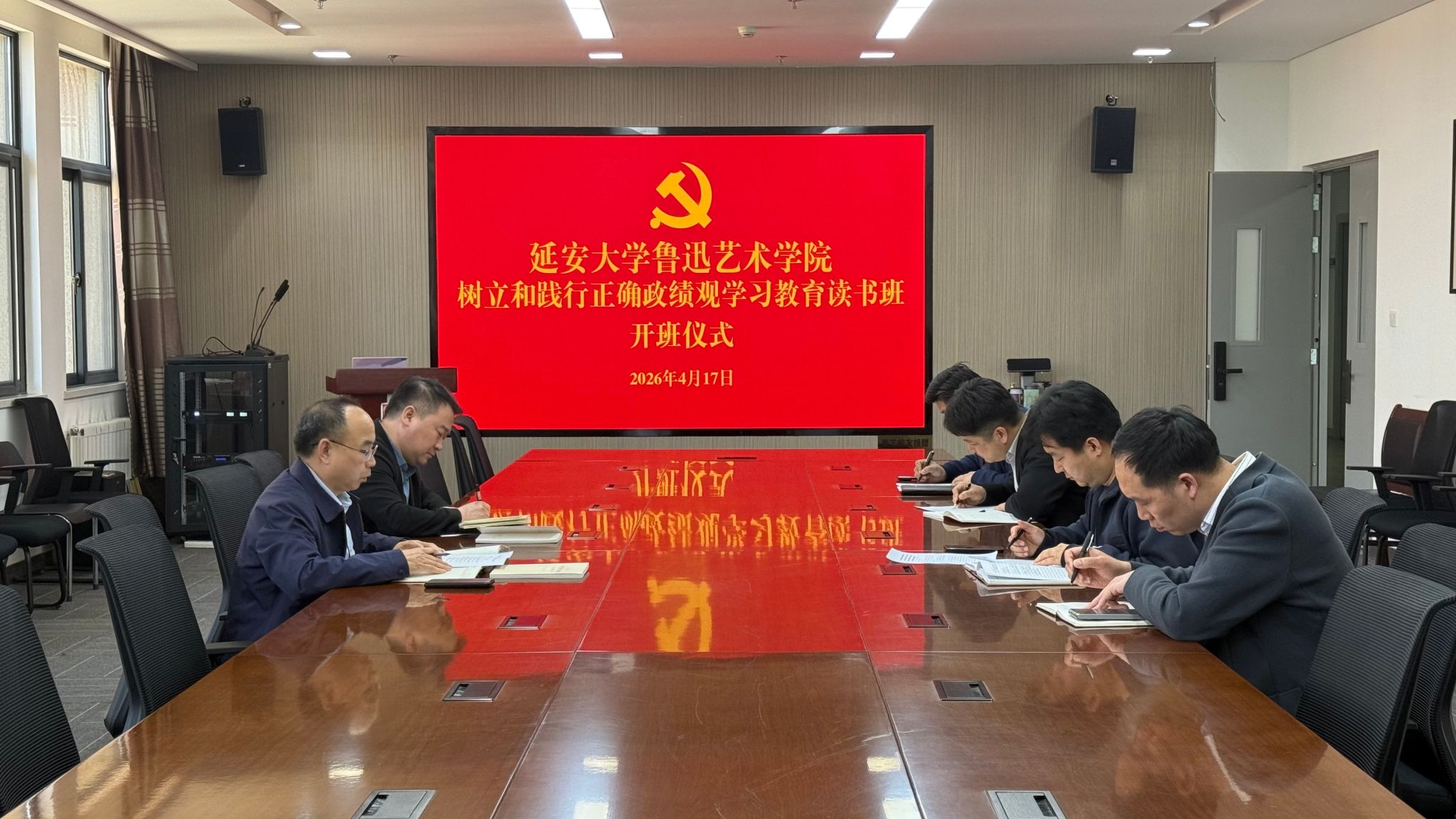 本网讯 为进一步深入学习贯彻习近平总书记关于树立和践行正确政绩观的重要论述,推动学院领导班子成员在学思践悟中增强党性修养、强化宗旨意识、提升履职本领。4月17日下午,鲁迅艺术学院召开树立和践行正确政绩观学习教育读书班开班式,学院领导班子成员参加开班式,院党委书记董振文主持。