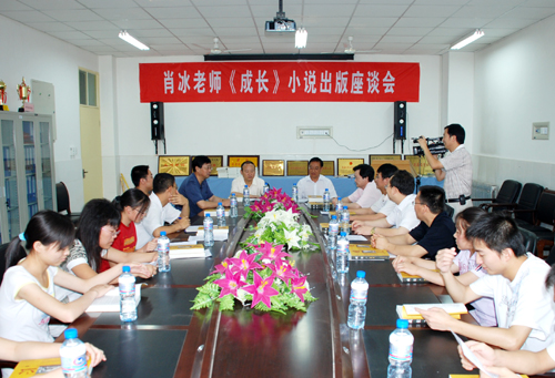 座谈会由宣传部部长张高旗主持,肖冰在会上介绍了160万字长篇小说《成长》的创作情况。刘建德书记赞扬了肖冰热爱文学、不懈追求的精神。刘建德书记、王延奇副校长分别向肖冰资助出版费5000元,苗乃周院长向肖冰资助出版费3000元,我校部分教师、肖冰大学时的班主任和大学同学等在座谈会上发了言。