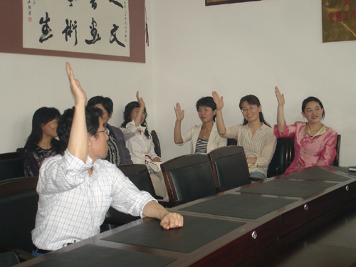 大会由人文学院党总支书记郝琦主持,4名入党积极分子惠晓峰、刘建华、王宁、张志云分别结合本人教学科研实践谈了对党的认识,他们的委托培养人冯菊香、郝琦、李宏斌和刘飞轮分别就四位入党积极分子在考察期内的表现作了发言,他们普遍认为,4位老师一直处在教学科研第一线,无论是从事专业课还是“两课”教学,都在各自的岗位上兢兢业业,他们在思想和行动上已经完全具备了一名党员的条件,强烈请求党组织接纳4位老师为中共预备党员。4位教师在热烈的掌声中以全票通过,被党组织接纳为中共预备党员。