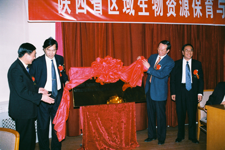 成立仪式上,陕西省区域生物资源保育与利用工程技术研究中心主任陈宗礼讲了话,张书玲副书记、郝飚部长和刘建德书记、廉振民校长共同为中心揭了牌。