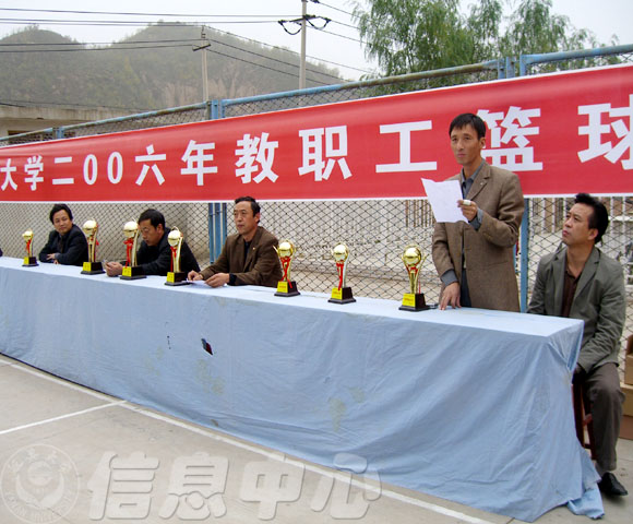 校长助理王延奇等出席了闭幕式并为获奖单位颁奖。机关一分会和体育学院并列本次篮球赛第一名,附属医院、机关三分会信息学院、计算机学院、机关二分会等单位分获第二至第六名,教科院、信息学院和医学院获得优秀组织奖。简短的颁奖仪式后,教职工联队和体育学院代表队进行了表演赛。