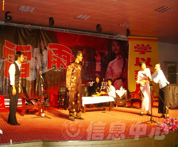 10 月11日,经过一个多月的紧张排练,我校文学院戏剧社话剧《雷雨》首场演出在学生活动中心隆重上演。这次演出由文学院主办,是我校多年来的首场戏剧演出。校长助理胡俊生、教务处处长齐广才、学生处副处长高峰、文学院院长刘保忠、党总支书记赵维森、部分教师以及近千名学生前来观看,学生活动中心座无虚席。