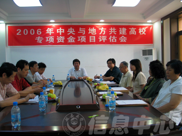 张威虎副校长首先对我校的历史沿革和近年来的发展状况向专家组做了汇报,并详细介绍了我校申报项目的前期准备工作。随后,专家组负责人具体介绍了这次评估工作的要求与目标,以及工作程序与工作纪律。由于这次评估工作时间紧、任务重,专家组分组对我校生命科学中心实验室设备等14项2006年中央与地方共建高校专项资金及修购项目进行了认真评估。