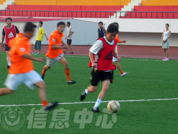 (本网讯 孙旭)6月23 日下午6:30,计算机学院教职工足球友谊赛在我校体育场开赛,教职工队最终以5:2大比分胜出。