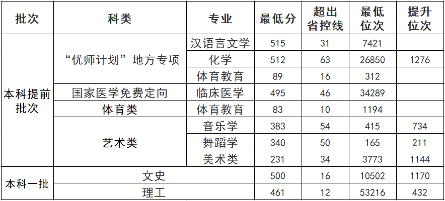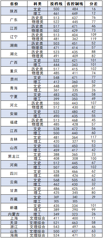 (二)省外:在13个综合改革省份中,有广东、河北、辽宁、重庆、山东 、湖北6个省份和江苏的物理类高出本科线63-119分;在16个非综合改革省份中,有甘肃、青海2个省市文史类录取分数和青海省理工类录取分数高于一本线,新疆、云南、宁夏、江西、安徽、贵州6个省市文史类及河南、江西、安徽3个省市的理工类录取仅低于其省内一批控制线10分以内。