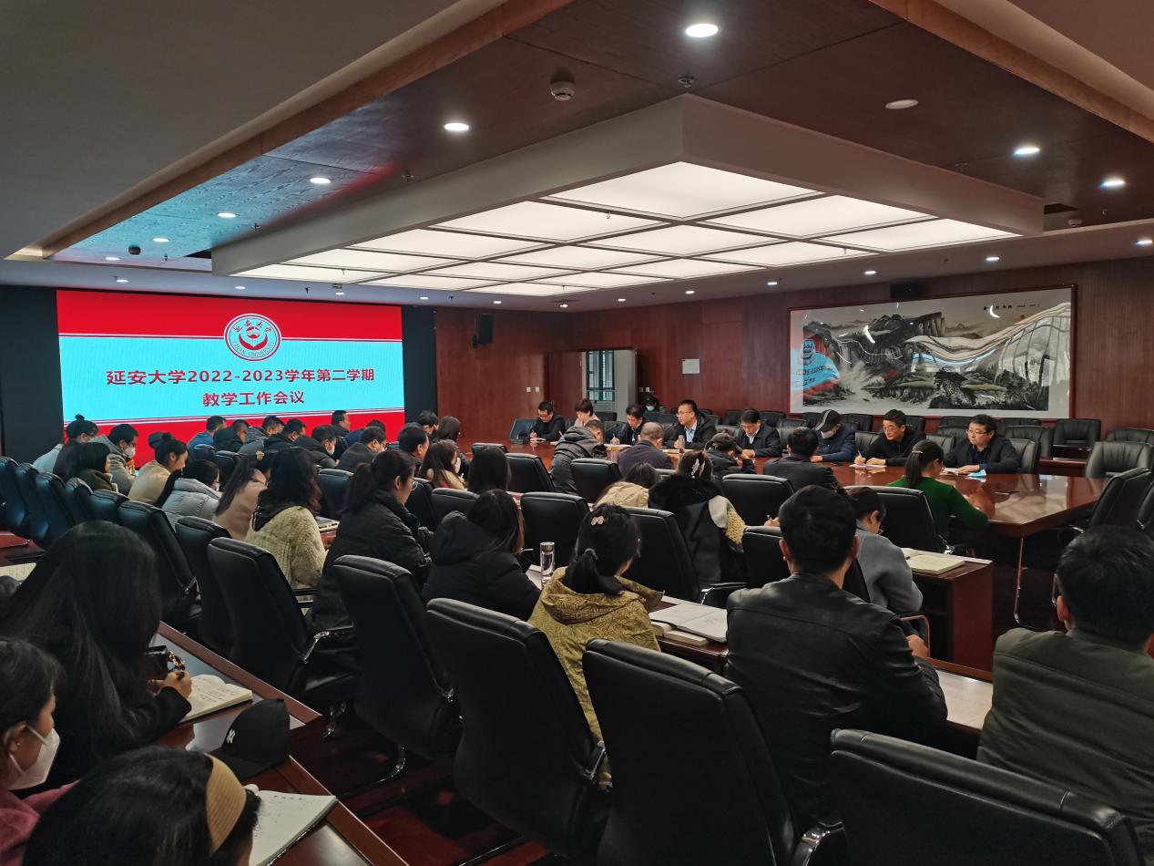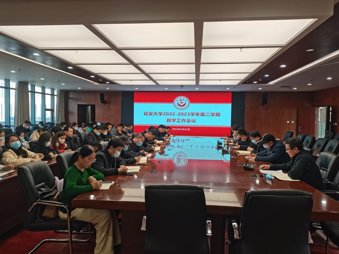 本网讯 2月24日下午,我校在新校区行政楼二楼会议室召开新学期教学工作会议,安排部署新学期本科教学工作。副校长谭虎娃,本科教学督导委员会主要负责人、各学院教学副院长、教学秘书、教务员,教务处、评估处全体人员参加了会议。会议由教务处处长吕磊主持。