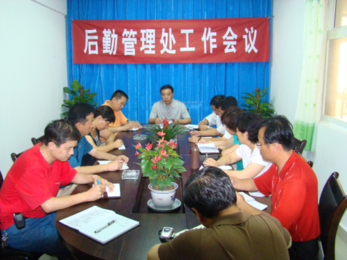 会议由台世强处长主持,他结合学校会议精神,就后勤管理处的迎新准备工作、综合治理工作、教学评估工作、学校宣传片制作等相关工作进行了安排部署,重点就教室服务、公寓管理、饮食管理工作进行了认真地分析研究,以确保教学工作的顺利进行。会议还针对我校教学评估、综合治理工作的实际,要求加强环境卫生、校园绿化的管理,给师生一个文明、干净、整洁的校园环境。