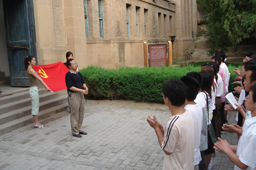 本网讯 6月28日下午,信息学院学生党支部在杨家岭旧址举行了入党宣誓仪式,校党委组织部副部长、党校校长拓宏伟应邀参加了宣誓仪式。