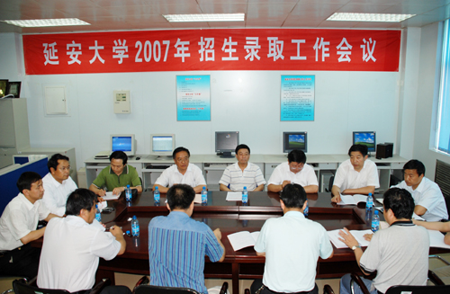 本网讯 7月4日下午,我校在网络中心召开2007年招生录取工作会议,校党委书记刘建德、校长廉振民、党委副书记高延龙、副校长胡俊生及纪检委、教务处、网络中心、学生处、保卫处的主要负责同志参加了会议。