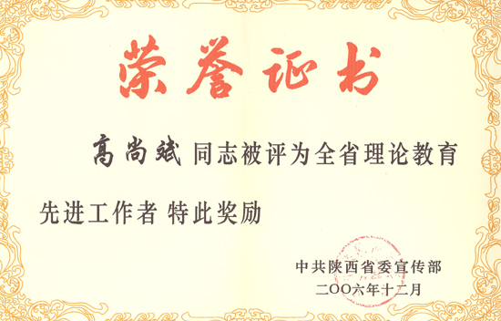2006年12月,中共陕西省委宣传部(2006)32号文件公布了《关于表彰全省理论学习先进单位和理论教育先进工作者的决定》,我校政法学院院长、中共党史研究院院长高尚斌教授被授予“全省理论教育先进工作者”称号。