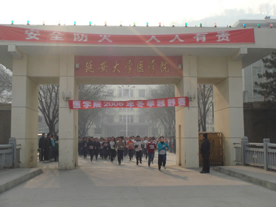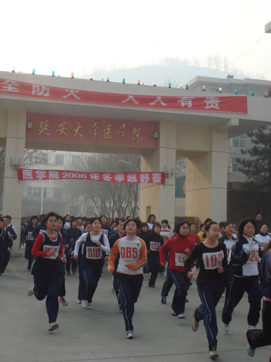 12月24日上午,医学院全体学生,迎着料峭的寒风,在医学院至万花路举办了一年一度的冬季越野赛。随着一声清脆的枪声,运动员们冲出了起跑线,虽然天气比较寒冷,但同学们都穿上了单薄的运动服,他们个个精神抖擞,紧追不舍,奋力拚搏。一声声喝彩,一阵阵掌声,使比赛气氛异常热烈。