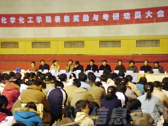 本网讯 12月7日晚,化工学院在校体育馆举行了学生表彰奖励与考研动员大会,教务处齐广才处长、学生处高峰副处长以及学院领导、教授、班主任和学生等参加了大会。大会由高楼军副院长主持。