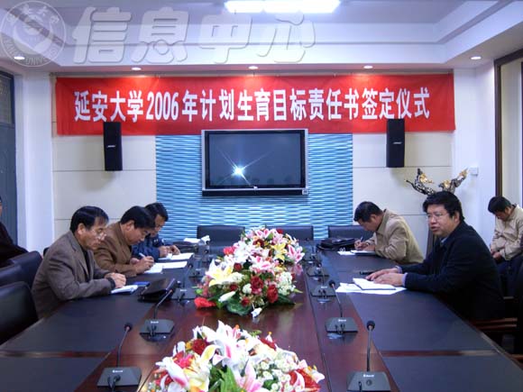 本网讯 11月14日上午,学校在逸夫楼204会议室召开了2006年人口与计划生育工作会议。会议由副校长张威虎主持,各学院、各单位负责人参加。会议就我校2006年人口与计划生育及本次人口清理清查工作做了总结和部署,最后张副校长代表学校与各单位、各学院签订了我校计划生育目标责任书。