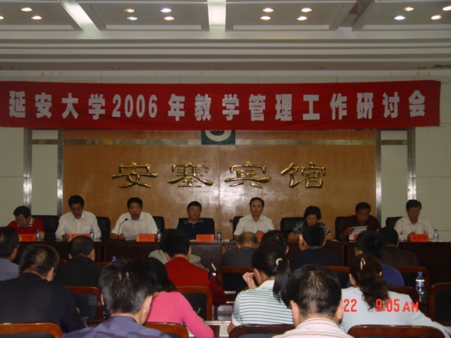 2006年8月22—24日,我校在安塞县宾馆召开了2006年教学管理工作研讨会。教务处全体人员、国资处、图书馆、教材供应中心负责同志、评建办有关人员、教学督导、各院系、教学单位主管教学院长、教学秘书共计56人参加了本次研讨会。校长廉振民、党委副书记高延龙、校长助理胡俊生出席会议。