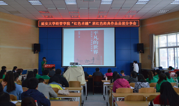 本网讯 “期待已久的红色品读分享会开始了,作为红色卓越班的学员,我很激动,也乐于与大家一起分享那些感动过我,温暖过我内心的经典作品,希望心中的那股力量伴随你我,成就梦想。”10月26日下午,路遥文学报告厅里座无虚席,“红色卓越” 班的成员们再次齐聚一堂,在路遥报告厅内举行了一场红色经典作品品读分享会。经管学院党委书记姜庆、副书记薛皓以及全体辅导员参加了分享会,党委宣传部副部长郭伟,泽东干部学院副院长王瑞,组织部办公室主任贺启翔应邀参加并担任评委。