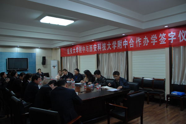 仪式上,基础教育中心秘书张永东宣读了合作办学协议书,西安科技大学附属中学校长张永和与我校附属中学校长黄巨国在协议书上签了字。根据协议,两校将在学校管理、师资培训、资源共享、学生代培等方面相互交流与帮助。