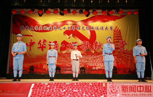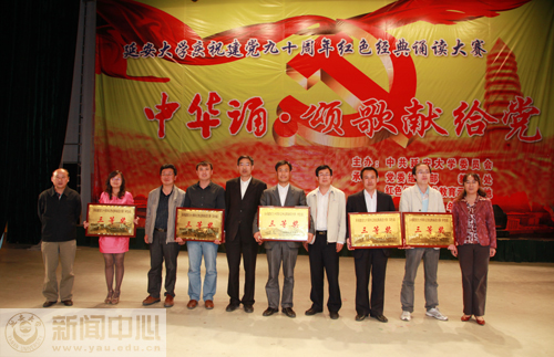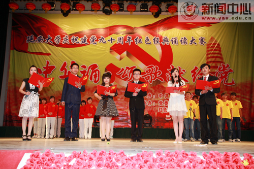 本网讯 5月12日19时30分,我校庆祝建党九十周年红色经典诵读大赛“中华诵·颂歌献给党”大型诗歌朗诵比赛学生组决赛在校礼堂拉开帷幕。大赛由中共藏宝阁精选资料大全998委员会主办,党委组织部、教务处和红色经典艺术教育示范基地承办,团委、影视制作中心、新闻中心、学生处和房产处协办,教务处处长齐广才、组织部部长薛美玲、宣传部部长张高旗、团委书记姜庆、文学院副院长孔岩、国家普通话水平测试员卜岩和我校文化产业研究所所长王延雄等担任了大赛的评委。