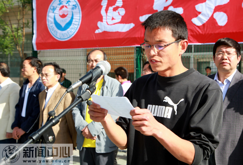 本网讯 5月12日下午,我校2011年“联通杯”教职工篮球赛开幕式在校篮球场举行,张威虎副校长出席开幕式并讲了话,中国联通延安分公司党群工作部经理任尚斌,我校工会副主席、附属医院工会主席沙文江,各基层分会主席,以及230多名运动员参加了开幕式。开幕式由校工会副主席徐宁主持。