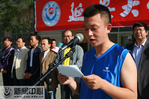 随后,信息学院教师刘江代表运动员宣了誓,体育学院教师景会锋代表裁判员宣了誓,徐宁副主席宣布我校二〇一一年“联通杯”教职工篮球赛开赛。