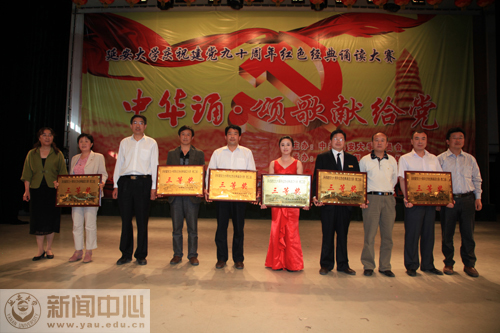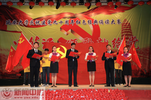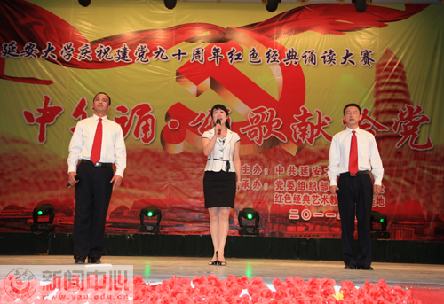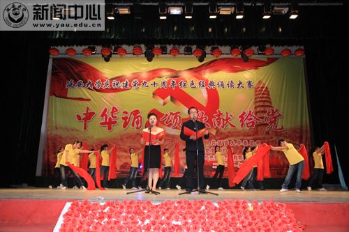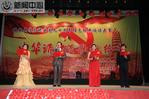 此前,我校庆祝建党九十周年红色经典诵读大赛“中华诵·颂歌献给党”大型诗歌朗诵比赛学生组决赛,于5月12日在学生礼堂举行。