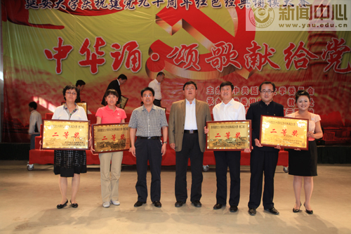 党委书记刘建德和校长崔智林为获得一等奖的单位颁了奖,高延龙副书记和杨建民副主任为获得二等奖的单位颁了奖,薛美玲、齐广才、张高旗和姜庆等为获得三等奖的单位颁了奖。