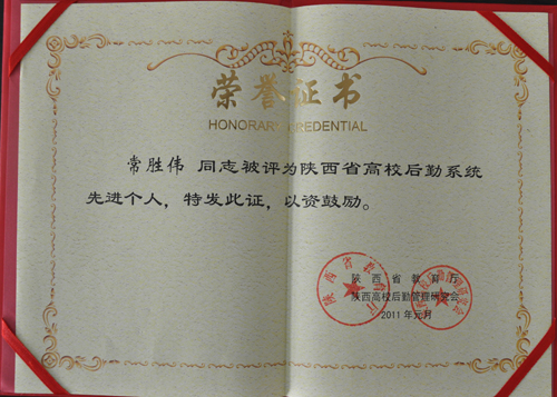 本网讯 日前,陕西省教育厅、陕西高校后勤管理研究会根据各高校上报材料和后勤工作开展情况,在全省范围内评选出包括我校房产处在内的27个单位,为陕西省高校后勤系统先进单位。我校后勤管理处处长助理、教室管理科科长常胜伟同时被评为陕西省高校后勤系统“先进个人”。省教育厅希望受表彰的先进单位和先进个人能发扬成绩,再接再厉,努力学习,优化管理,认真服务无私奉献,不断提高后勤服务水平和质量,为陕西高校后勤改革和构建和谐校园做出新的更大的贡献。