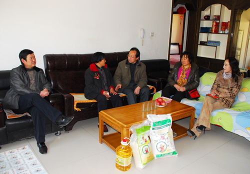 本网讯 1月30日下午,学校党委副书记、工会主席高延龙,工会常务副主席白泽生、副主席徐宁等,对校工会老领导及部分特困教职工家庭进行了走访慰问,并送去了慰问金、慰问品和新春的祝福。