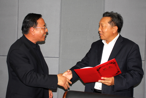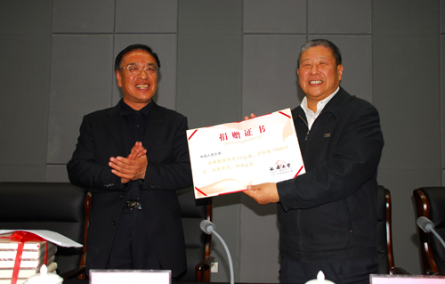 捐赠仪式上,中国人民大学向我校捐赠了272种、2720册、总价值10万余元的图书。刘建德书记代表我校,向中国人民大学颁发了捐赠证书。我校聘任纪宝成教授、吴晓求教授为名誉教授和兼职教授。