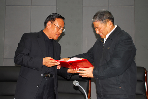 刘建德书记向纪宝成校长颁发聘书