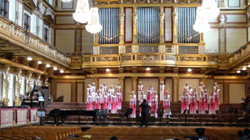 3月21日至24日,应维也纳春季音乐节组委会的邀请,我校鲁艺民歌合唱团参加了音乐节的合唱演出。21日,合唱团抵达维也纳;22日上午和晚上,合唱团与著名的维也纳童声合唱团进行了合排;23日,合唱团在音乐圣殿金色大厅进行了1个小时的彩排;晚上8点,合唱团在座无虚席的金色大厅正式演出。合唱团一登场,独特的服饰就赢来了观众的热烈欢迎。合唱团先后演唱了《哪哒哒也不如咱山沟沟好》、《三十里铺》、《酒曲》、《赶牲灵》、《黄河船夫曲》和《想你哩》等6首陕北民歌,并与维也纳童声合唱团共同演唱了《命运之神》、《春天》和《轮舞》等3首古拉丁语和古德语合唱歌曲。演出结束后,在观众热烈而经久不息的掌声中,合唱团先后进行了5次谢幕。