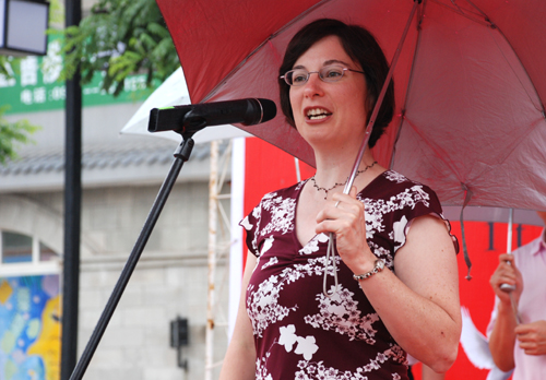 外籍教师代表米歇尔发言