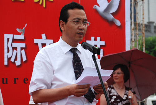 刘建德书记宣布我校首届校园国际文化节开幕。