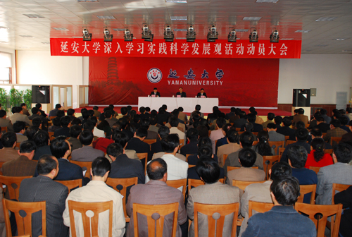 会上,党委书记、校深入学习实践科学发展观领导小组组长刘建德同志作了动员报告,他从四个方面对我校深入学习实践科学发展观活动作了动员和全面部署,并提出了六点具体要求。这四个方面包括:一是充分认识学习实践科学发展观活动的重大意义,切实增强推进学校科学发展的紧迫感和使命感;二是结合学校实际,把握好学习实践活动的指导思想、目标要求和基本原则;三是要抓住学习实践活动需要研究解决的突出问题,努力提高学习实践活动的针对性和实效性;四是抓住关键环节,明确方法步骤,确保我校学习实践活动深入扎实开展。六点具体要求是:第一要加强组织领导,落实工作责任;第二是坚持领导带头,发挥表率作用;第三是注重分类指导,强化督促检查;第四是加大宣传力度,营造浓厚氛围;第五是注重统筹兼顾,推进整体工作;第六是鼓励探索创新,建立长效机制。刘书记最后希望大家能抓住这次难得的历史机遇,认真学习,扎实工作,以昂扬向上、奋发有为的精神状态,解放思想谋发展,突出特色促振兴,提升质量上水平,为把我校建设成为“既有传统精神,又具时代特色,国内外知名的高水平大学”做出更大的贡献!