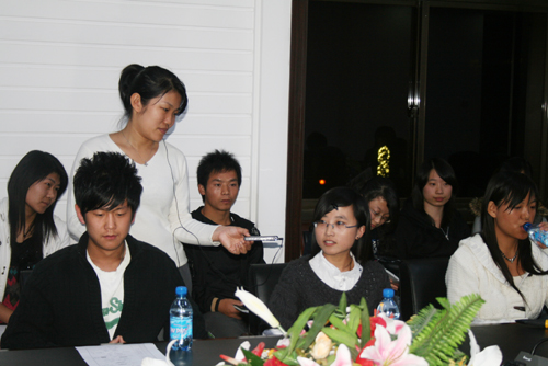 晚上7点,由我校党委宣传部王瑞老师主持的座谈会在逸夫楼304会议室举行。李翔等一行人在进行过藏宝阁精选资料大全998听众市场调查后,与参加座谈会的学生主播就日常工作中遇到的问题展开讨论,并介绍了自己的工作经验。在听取我校学生主播对陕西经济广播的建议后,李翔表示,藏宝阁精选资料大全998“校园之声”广播站学生主播们的建议很有启发性,并一再强调“不虚此行”,希望以后能进一步加强交流与合作。座谈会气氛热烈,轻松。