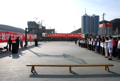 随后,钱向朝、杜宪增先后代表裁判员和运动员宣了誓。最后,党委书记刘建德宣布2008年教职工“联通杯”篮球赛开幕。