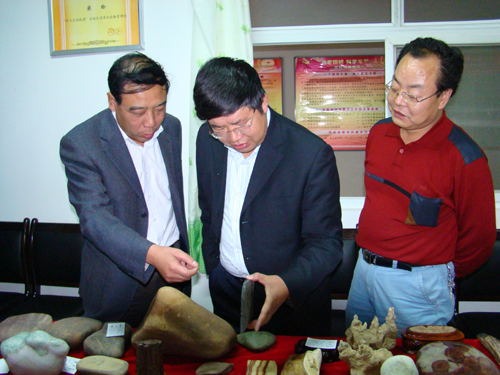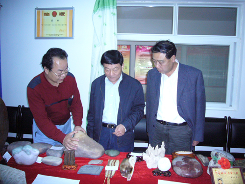 26日下午,廉校长、张威虎副校长在后勤处处长台世强等的陪同下也观看了奇石展。
