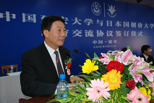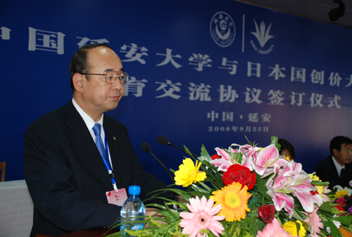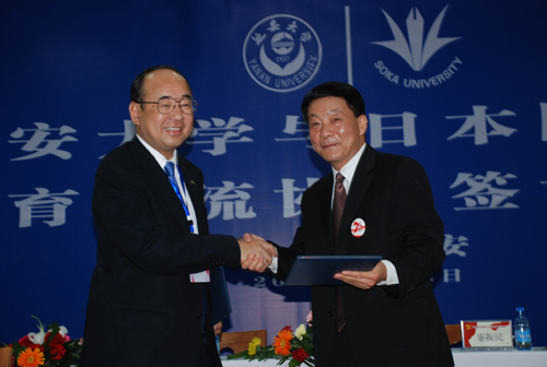 本网讯 9月22日下午,我校与日本创价大学校级交流协议签订仪式在我校学生活动中心举行,我校校长廉振民,日本创价大学理事长田代康则、创价大学驻北京办事处主任川上喜彦,我校教务处副处长武忠远、国际交流处处长吴卫东及我校师生代表400余人参加了仪式。签订仪式由我校副校长胡俊生主持。