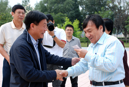 本网讯 9月18日上午,宋庆龄基金会副主席、中国摄影家学会副主席杨绍明一行来我校考察。廉校长和刘庆利副书记陪同杨绍明一行参观了我校校史陈列馆、路遥文学馆和陕北民俗馆,并向杨绍明先生赠送了我校画册。杨绍明先生在参观过程中对我校校友路遥及其文学成就给予了很高评价。