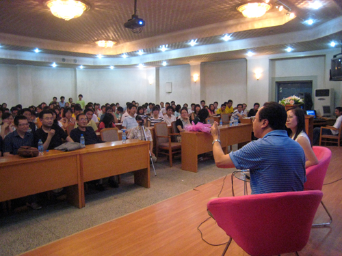 本网讯 6月4日晚,由我校党委宣传部主办,文化产业研究所协办的首期励志讲坛在校多功能报告厅开讲。首期特邀嘉宾为我校校友、延安市博爱中学董事长黄巨国先生。